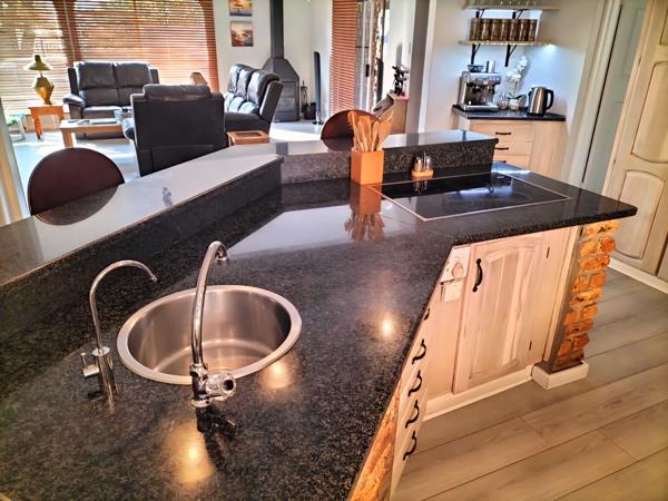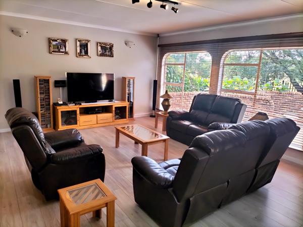 - Inviting patio and tile-covered thatch Lapa with built-in braai and bar area