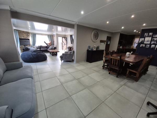 The open plan design of the kitchen, dining area and lounge, offers lots of space to entertain visitors and the kitchen has a separate washing up area. The kitchen offers lots of cupboard space and a gas stove while the lounge area has an indoor braai area, making it convenient to braai even during the cold winter months.