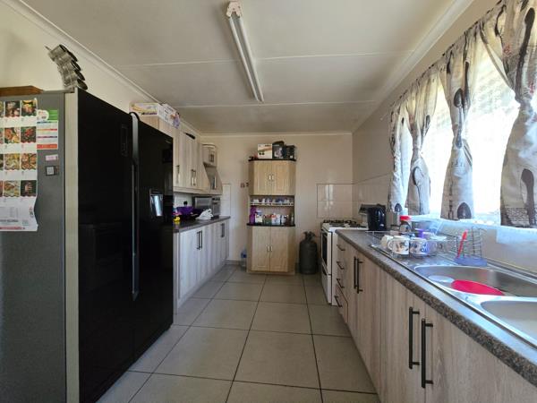 The home offers three spacious bedrooms with built-in cupboards, including a main bedroom with a private ensuite bathroom. The second bathroom, located in the passage, is thoughtfully designed with both a bathtub and a showerperfect for families.