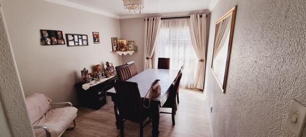 Step inside and find a warm and inviting living area, bathed in sunlight, creating a bright and airy atmosphere. The home features three comfortable bedrooms and two beautiful bathrooms, ensuring convenience for the whole family. The modern kitchen is a delight, boasting loads of modern cupboard space and flowing seamlessly into the dining room, perfect for family meals and entertaining.