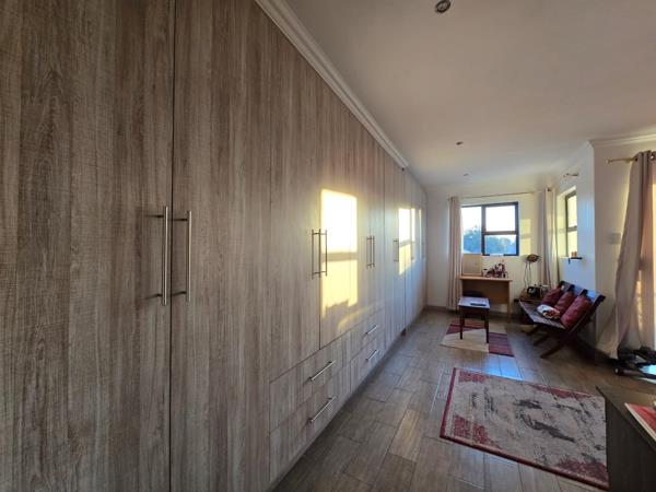 With its own entrance, this stylish home features aluminium windows and doors, a bright open-plan living and dining area, and a contemporary kitchen with melamine cupboards. Two bedrooms with built-in cupboards share a modern bathroom with shower, basin & toilet. Upstairs, the spacious main suite offers an en-suite bathroom, ample cupboards, and a private balcony for morning coffee or evening relaxation.