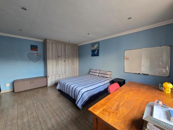 Two generous living areas. A well-planned kitchen with melamine cupboards, granite-look tops, undercounter oven, and a large scullery with extra storage. Three bedrooms with built-in cupboards and two modern bathrooms ensure family comfort. Extras include a single garage, additional carport, and an enclosed patio with built-in braaiperfect for year-round entertaining.