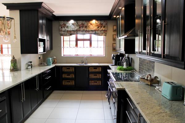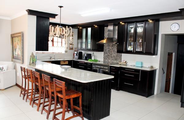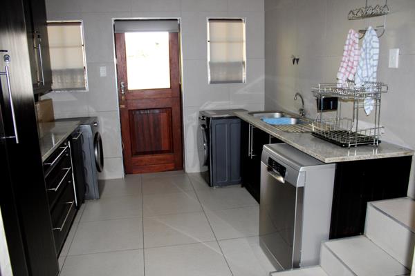 The open plan lounge, dining area and kitchen is ideal for a big family and mom can keep an eye on the cooking and the kids at the same time. The kitchen is modern and any cooks dream with a separate wash up area.