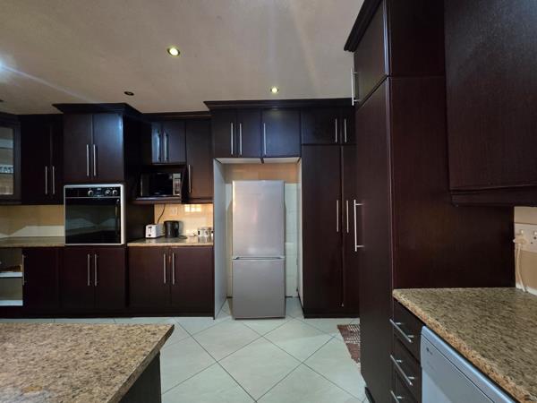 Set on an 832 m2 stand, the property also boasts a swimming pool, a lush garden, and an inviting outdoor entertainment area with a built-in braai. The automatic garages provides secure parking.