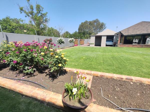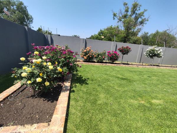 The property offers a beautiful landscaped greenery with roses and high wall with electric fence for security.