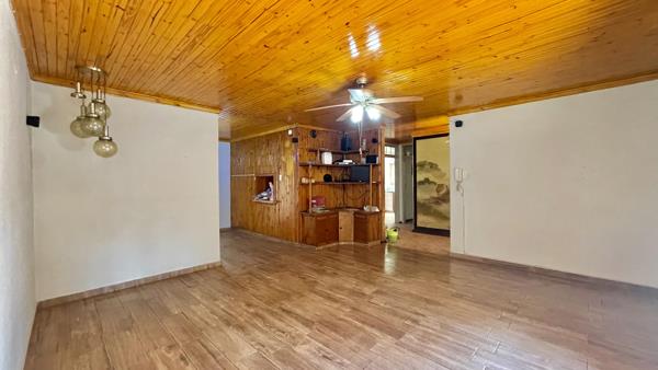 Spacious open-plan living and dining area, fully tiled and complemented by stylish multipine ceilings.