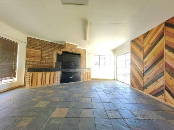 This spacious 4 bedroom home boasts 2 neat bathrooms, guest toilet, living area with built in fireplace, dining room, seperate study room, neat kitchen, double garages, entertainment area with built in braai. BONUS 1 bedroom flat rented out seperately. This home is fitted with a 5000l Jojo tank. Electricity is prepaid.