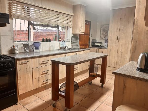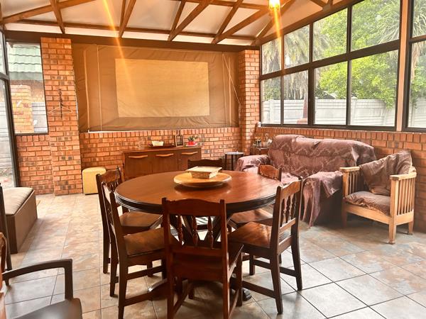 Outside, the property features a lovely, well-maintained garden with fruit trees and vegetables, a wendy house, and a greenhouse perfect for gardening enthusiasts. The double-door garage and visitors parking to accommodate five to six vehicles, providing both security and convenience. The property sits on a generous 1,305 m plot, offering plenty of outdoor space.
