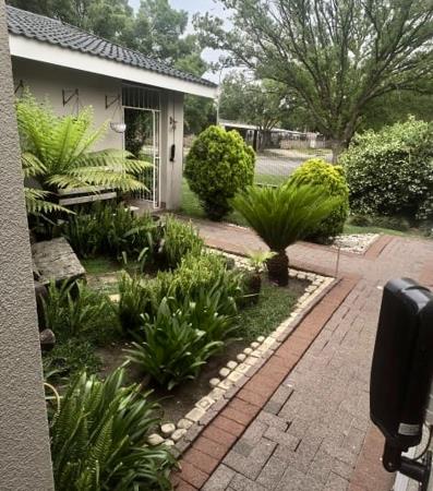 Outdoor living is well-catered for with a dedicated braai room, perfect for social gatherings. Secure parking is provided by a double garage. For peace of mind, the property is equipped with an alarm system, burglar bars, and an access gate. Sustainability features include water tanks and a battery inverter, contributing to reduced utility reliance. Pets are allowed, making this an ideal home for animal lovers.