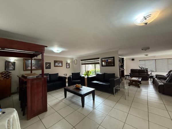 Step through the remotecontrolled sliding gates and youre greeted by a tiled driveway that leads to two double garages and undercover parking for two more cars. The property is set on a beautifully paved, cleanlined garden that frames a sparkling pool with a cascading waterfall. Beside the pool sits a spacious lapaperfect for braais, relaxed seating, or a mancaveand a tranquil koi pond that adds its own gentle waterfall.