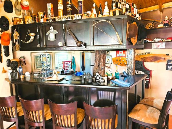 Entertainment options include a built-in braai, a covered swimming pool, and a bar area