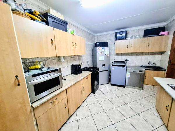 Step inside and be welcomed by a spacious lounge and dining area that flows seamlessly onto a large, well-kept back garden ideal for family gatherings and outdoor entertainment. The kitchen offers ample cupboard space and a gas stove, making it both stylish and practical.