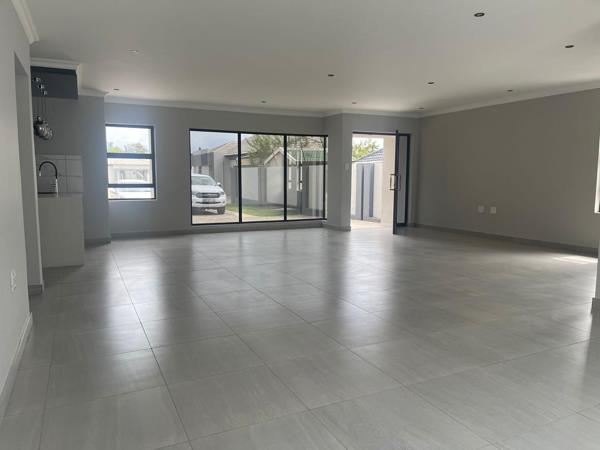Outdoor living is equally impressive, with a covered patio featuring a built-in braai, perfect for hosting family gatherings or relaxing evenings.