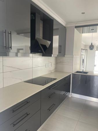 Living areas are expansive, boasting two lounges, a dining area, and an open-plan kitchen that seamlessly flows into the scullery. The kitchen is a true showpiece, fitted with sleek cabinetry and a state-of-the-art modern knock knock fridge valued at R70,000, making it a dream space for the avid entertainer.