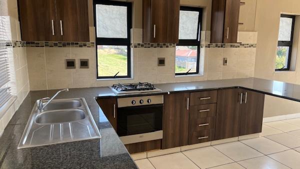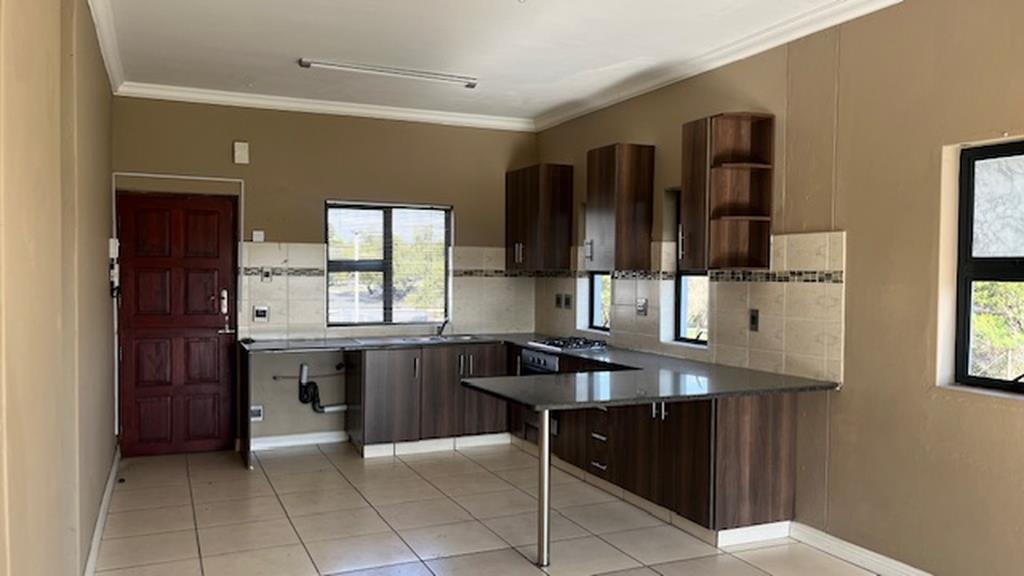 It offers an open-plan kitchen with a gas hob and plenty of built-in cupboards, flowing into a comfortable lounge area with a built-in braai perfect for entertaining. Both bedrooms include built-in cupboards, and theres a washing machine connection for added convenience.