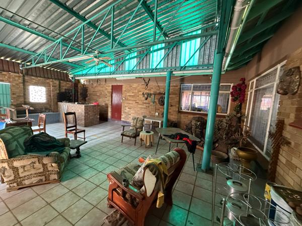 A standout feature is the large, covered entertainment area located off the kitchen. Complete with a built-in braai, this huge space offers endless possibilitiesit can be used for entertaining, converted into a dedicated play area, or utilized as a large, convenient workspace.