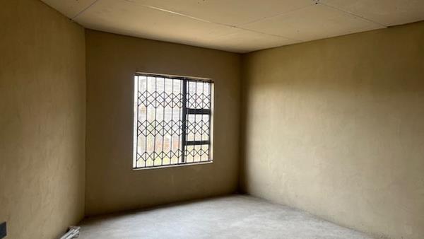 It offers an open-plan lounge, dining room, and kitchen with a cozy corner study for added convenience. There are 2 bedrooms and a bathroom fitted with a bath, basin, and toilet.