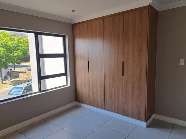 This is a new, up market, full title, 140 sqm 3-bedroom house on a stand of 250 sqm in a very good area of Secunda. Large open plan lounge, dining room and kitchen all in one with a separate scullery. Living area leads out to a small patio in the low maintenance garden area. Neatly tiled throughout the property and 2 bathrooms (1 en-suite) with very up-market finishes. Bedrooms furbished with unique closets. Downlights and high-up ceiling with visible rafters in living area. Double garage with tiled floor, a drive through facility to the patio area and internal access to the living area. Strictly view on appointment.