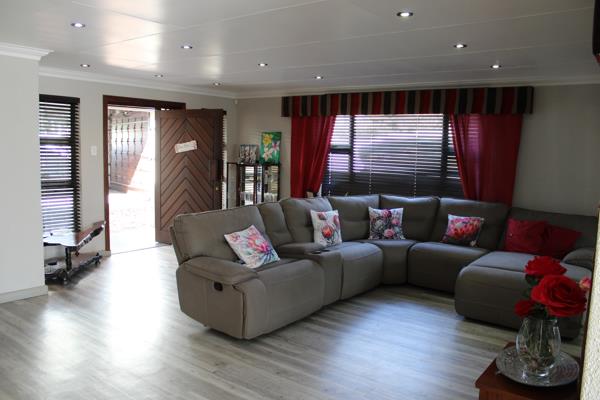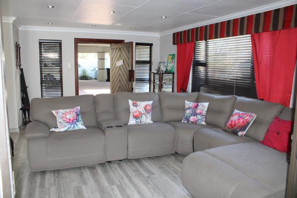 The open entrance area flows into a living room, dining area and indoor braai area, providing plenty of space and opportunities for visits from guests.