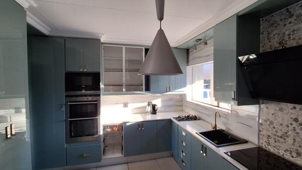 * Designers kitchen with Glas top hob and 2 gas burner hobs, double eye level ovens, build-in microwave oven and a separate scullery