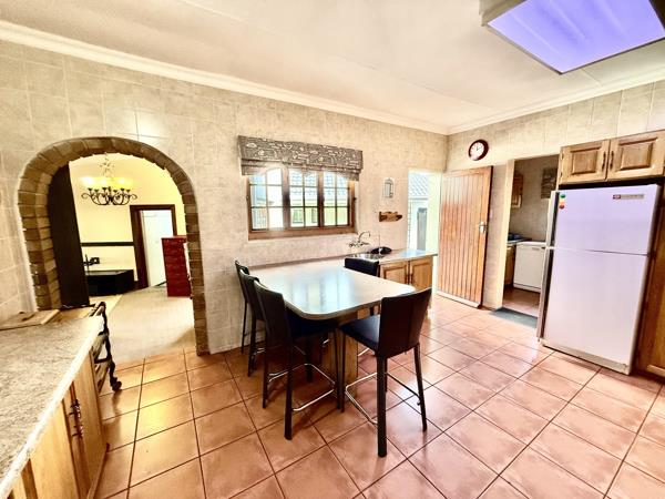 Step inside and youre welcomed by three open-plan living areas, ideal for gatherings and relaxed living. The kitchen boasts solid wooden cupboards, ample storage, a gas stove, electric oven, and a separate scullery with additional built-in cupboards.