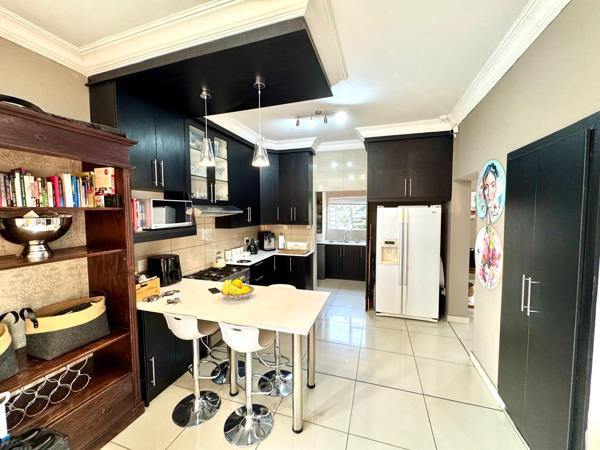 From the moment you step through the grand entrance hall, you are welcomed into spacious and sun-filled living areas. The open-plan layout allows for seamless flow between the lounge and dining spaces, enhanced by large windows that fill the home with natural light. The enclosed patio area, complete with stacking and sliding doors, opens up to a beautifully manicured garden. This outdoor oasis features a built-in boma for relaxed entertaining and an irrigation system to keep the garden lush year-round.
