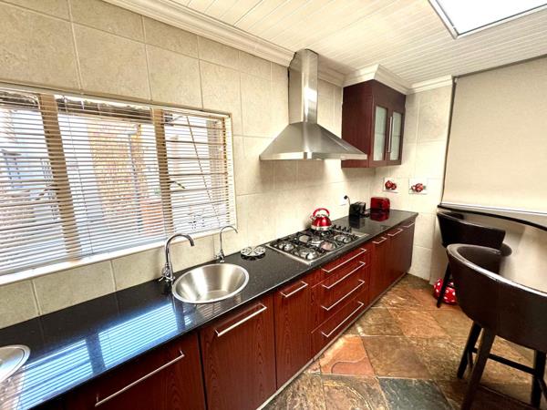 The property is equipped with an inverter system, lithium batteries, and solar panelsensuring uninterrupted power supply. A JoJo water tank provides water security. Outdoor amenities include a lapa with a built-in braai, a boma area for social gatherings, and a beautifully irrigated garden. There''s a pedestrian gate leading directly to the nearby greenbelt for added outdoor enjoyment.