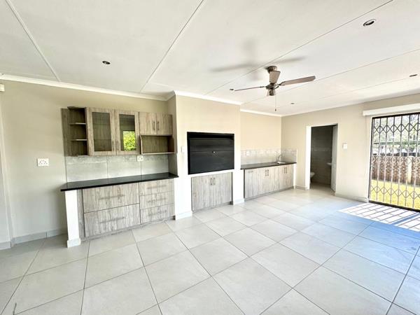 An impressive feature of this home is the indoor entertainment area, designed with built-in solid granite counters and cupboards, a built in braai, and a guest bathroom. Sliding doors lead from this space out onto a private, landscaped garden, offering a seamless indoor outdoor experience for entertaining or simply relaxing in your own tranquil haven.