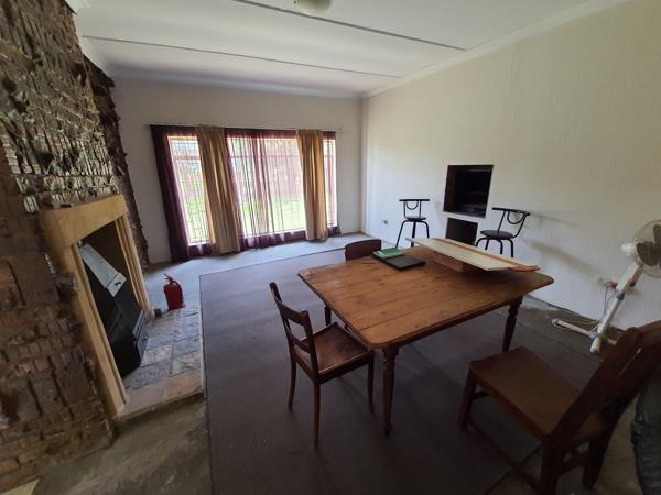 This house offers and small study area an inside braai in the the dinning room an open plan lounge area that is connected to the kitchen. There is three bedrooms and two bathrooms an secure double carport at the back of the house and an outside room, store room, outside toilet and double roll up garages.