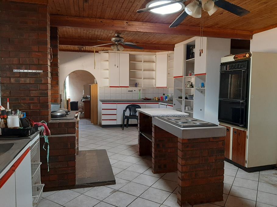 The house consists of 5 big bedrooms, 2 full bathrooms, of which one is on-suite, a big kitchen, 2 living areas, one with a fireplace, and a large entertainment area. A double garage, 6 boarding kennels, 4 bigger areas for animals to roam free, 3 carports, and a storage room. There are 2 workers quarters and a small tunnel or greenhouse to plant your own vegetables. A working borehole with 3-phase electricity.