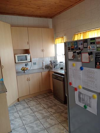 The expansive home also has a study and showcases wooden ceilings, tiled floors, and built-in cupboards, making it perfect for family gatherings in peaceful surroundings. The bedrooms are located down a passage, behind a security gate for added safety. The main bedroom offers a walk-in wardrobe and en suite bathroom, while the hallway provides additional cupboard space. The flatlet is a self-contained unit complete with its own kitchen, bathroom, bedroom, and eating area.