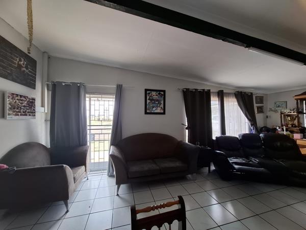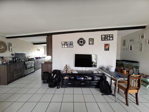 The property features 2 bedrooms, 2 bathrooms, a large entertainment area with a built-in braai, an open-plan kitchen and living room, and a double garage with another 1 bedroom flat. This house have a solar system with 10 solar panels, an inverter, and batteries