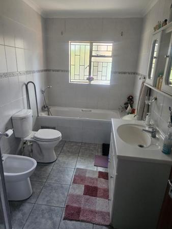 The second dwelling is a single-storey facebrick home under a pitched tiled roof, offering three 3 bedrooms, two 2 bathrooms, lounge, dining room, kitchen, and an enclosed patio. It includes an attached single garage and a solar system.