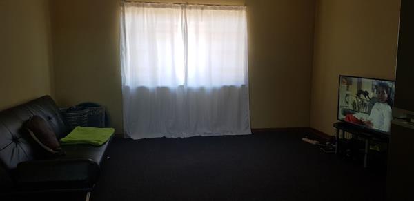 This two-bedroom flat in Trichardt offers one bathroom, a lounge, and a kitchen.