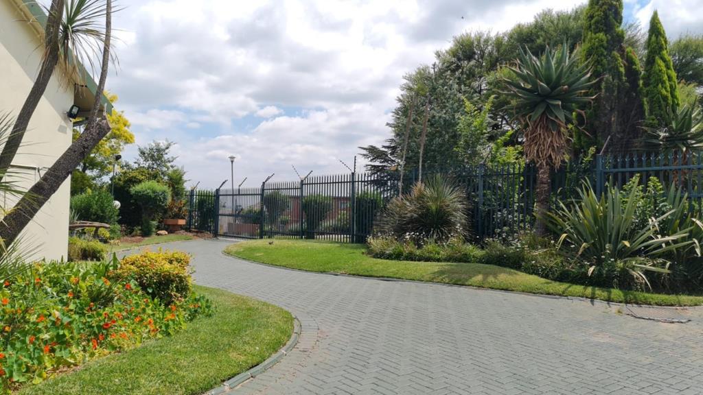 Outside sports a brick paved courtyard with a covered build-in braai forming part of the vast garden area.