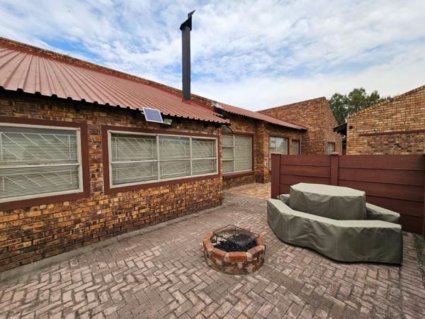 Outdoor Oasis: A charming boma area opens from the TV room, overlooking a meticulously maintained garden with beautiful paving.