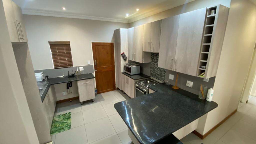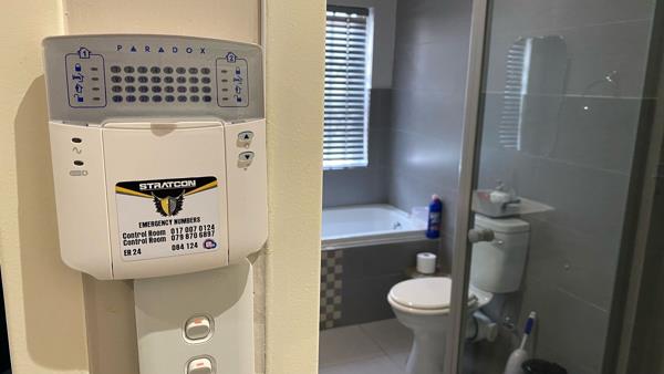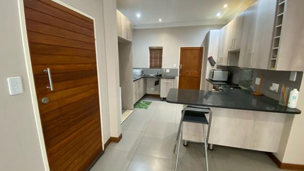 A double garage ensures convenience and ample storage. For your ultimate peace of mind, the home is equipped with a reliable alarm system, burglar bars, and a security gate.
