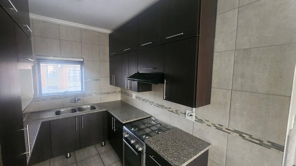 The apartment boasts a spacious open-plan TV room area leading to a lovely kitchen with a gas stove and loads of mahogany cupboard space. Two spacious bedrooms and one full bathroom with a bath and shower.