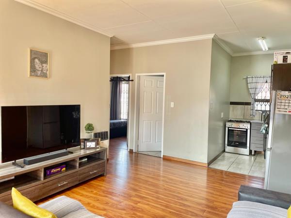Additional features include a manual single garage with direct access into the home for enhanced security, prepaid electricity, a gas geyser, and trellis security bars on all windows and doors.