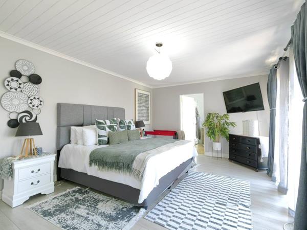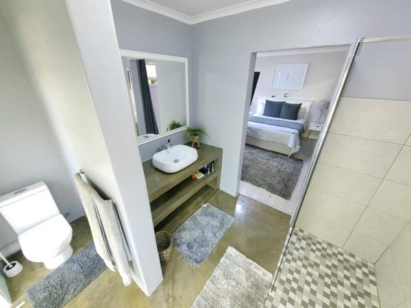 This spacious 4-bedroom home boasts 3.5 modern bathrooms, and study.This home has a spacious open-plan kitchen equipped with a gas stove and a cozy breakfast nook, and an open plan lounge. The property also includes a pizza oven, boma area and a built in braai. This property is fitted with Jojo tanks, a borehole and pump. BONUS - Bachelor flat is included in the rent witch can be used as a 5th bedroom with its own bathroom. There is carport parking for 5 cars. For security, the house comes with an alarm and electric fence. Electricity is pre paid.