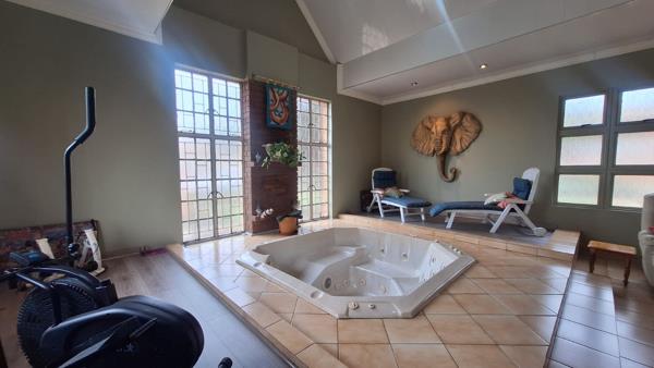 Indoor entertainment area with jacuzzi, built-in braai, and built-in bar