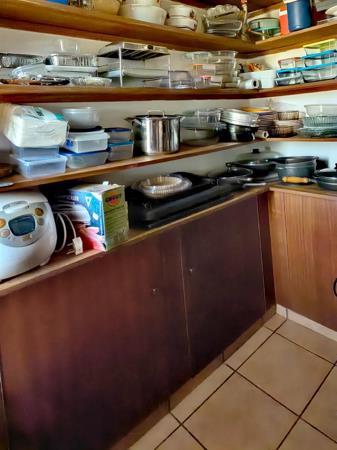 Step into a welcoming, open-plan kitchen that boasts beautiful wooden countertops, built-in cupboards, an electric stove, eye-level oven, a double basin, and a pantry ideal family cooking. Adjacent to the kitchen is a warm and inviting dining area, seamlessly flowing into a small hallway leading to a spacious and light-filled lounge, featuring large windows that bathe the room in natural light.