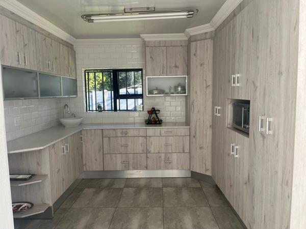 Stepping outside, youll find a spacious thatched lapa, perfect for hosting gatherings, a Wendy house, an outside bathroom with shower and basin, and a YoJo Tank for water storage.