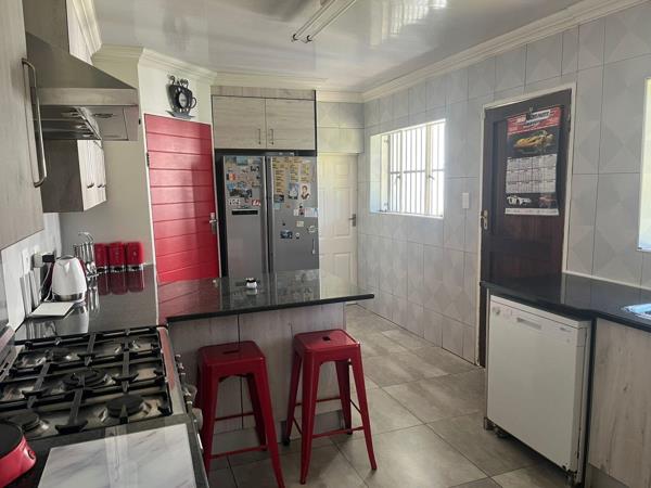 Inside, all six bedrooms are fitted with carpets and built-in cupboards. Two of the bedrooms feature full en-suite bathrooms, while the remaining rooms are serviced by two additional bathrooms one with a shower, basin, and toilet, and the other with a bath, basin, and toilet bringing the total to four bathrooms, all powered by a gas geyser for energy efficiency.