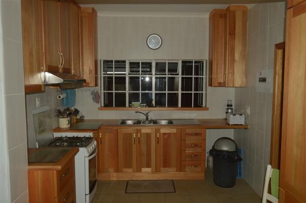 Solid 2 bedroom house with 2 bathrooms tick all the boxes .The 3 garages is tiled and one can be converted into a third bedroom.The cupboards is made out solid saligna and there is more than enough.The house has a nice flow and have classy finnishes.The house is very safe and the garden is well established.