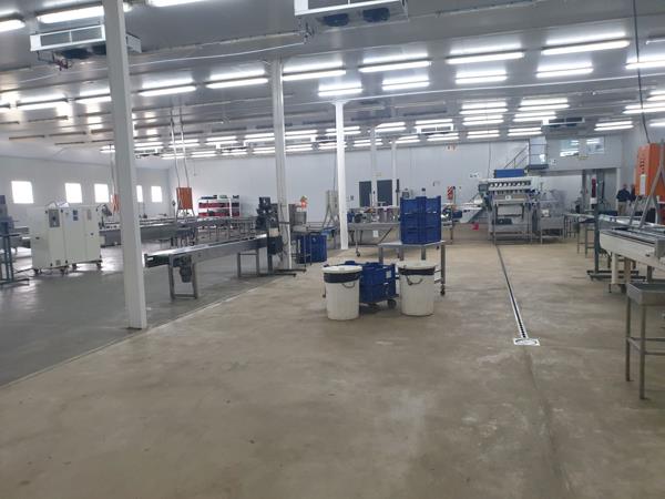 The complex consists of a covered receiving area, receiving cold room, preparation area, packing hall, supplier crate area and a dispatch cold room. The entire building is refrigerated. Measurements are: