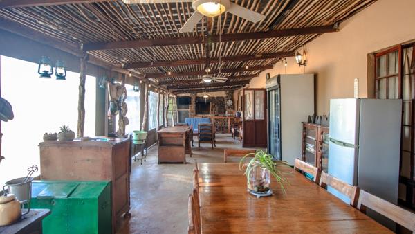 The other 10 hectares include buildings, such as the main living house. This house, built about 10-15 years ago by the current owner, does not have available building plans. It is a farmhouse designed for someone who enjoys indoor grilling and taking in the views over Barberton. The flooring is a combination of concrete and knotty pine. My favorite part of the house is the patio with the built-in braai, which also features a small stove for baking fresh bread or pizzapossibilities are endless!