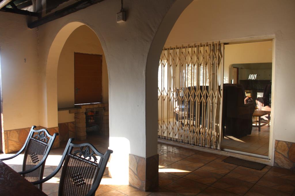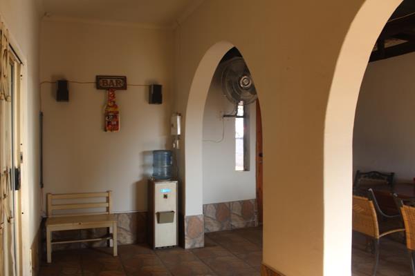 The size itself presents the comfort. This property situated in the CBD (walking distance to the FET, shops). It offers 3 bedrooms in the main house, 2 bathrooms, 3 living area that can easily be converted into an extra 4th bedroom, kitchen, scullery, big laundry, large reception area, single garage, 6 carports, entertainment area and extra 2-bedroom flat with its own entrance. This house will save your high utilities account as it has a Borehole.