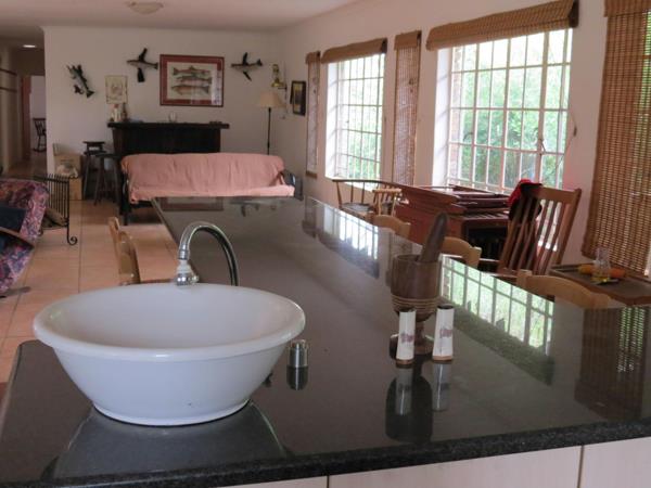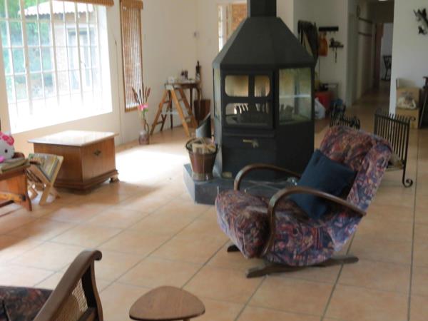 The spacious open-plan kitchen, living area opens up to a undercover patio with a braai. A equipped borehole with 5,000 liter yo you tank makes it possible for irrigation of the garden. Spend your summer mornings with a cup of coffee on the front patio and your winter evenings snuggled up by the fireplace with a good book.