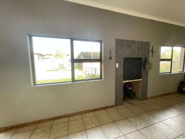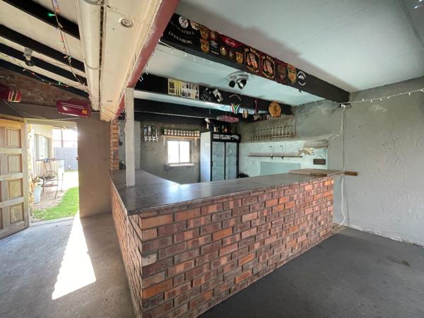 The home features a generous lounge area adjacent to a built-in bar, ideal for entertaining, or with a front-facing outdoor braai and a convenient backyard bathroom.